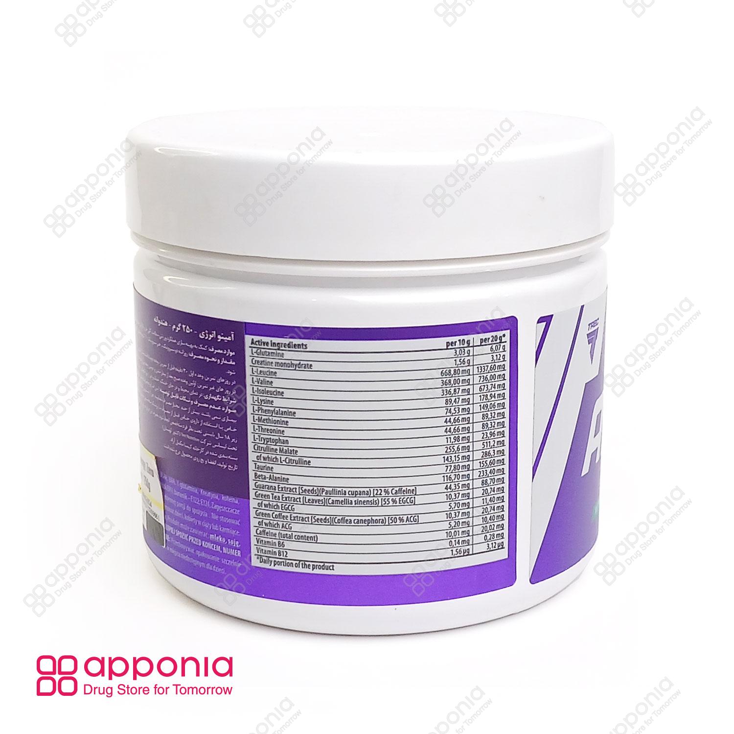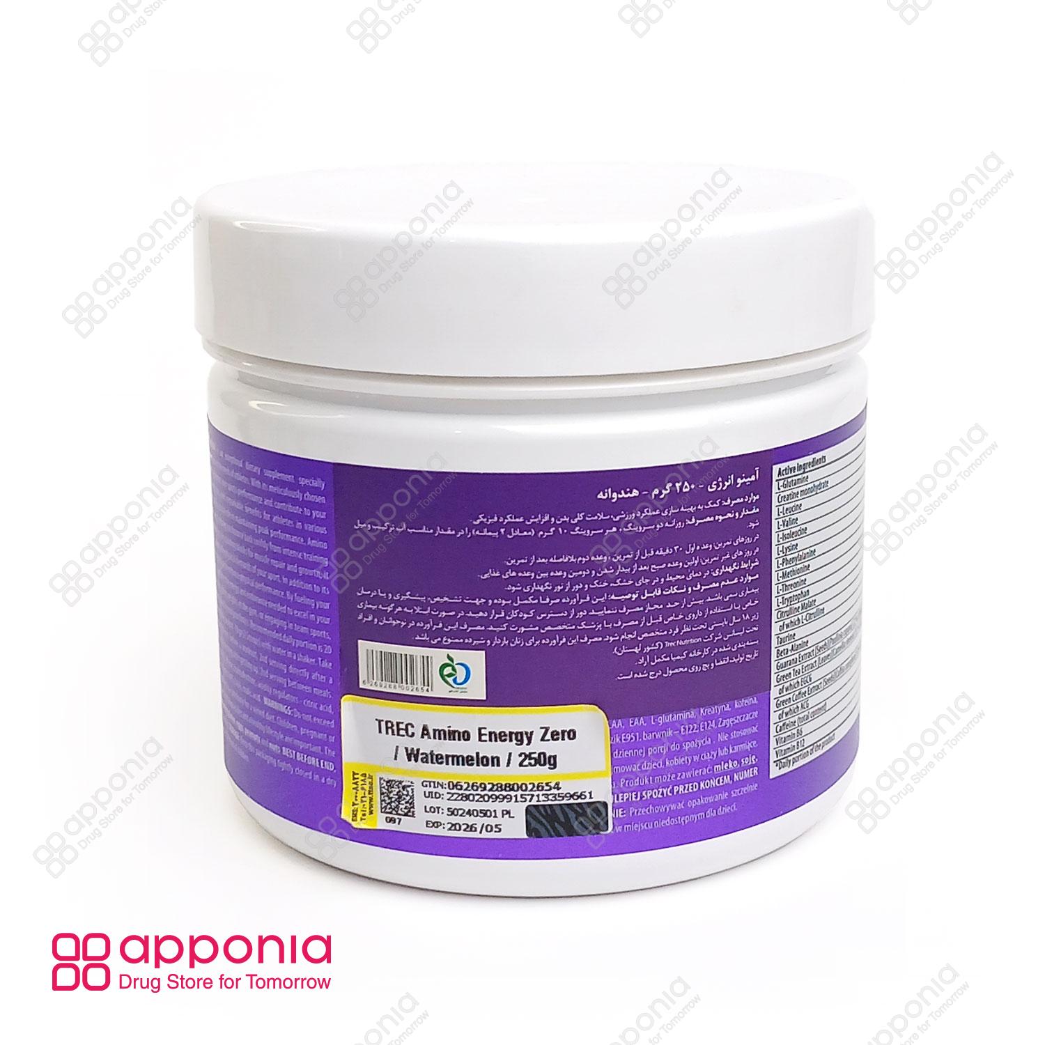 پودر آمینو انرژی زیرو ترک نوتریشن (Trec Nutrition Amino Energy Powder) یک مکمل انرژیزا و تقویتکننده عضلات است که تحت لیسانس شرکت ترک نوتریشن لهستان تولید شده و توسط شرکت کیمیا مکمل آراد در ایران بستهبندی و عرضه میشود. این محصول که یک مکمل آمینو اسید محسوب میشود، در دستهبندی مکملهای بدنسازی قرار میگیرد. آمینو انرژی زیرو ترک ترکیبی بینظیر از ۱۴ نوع آمینو اسید ضروری (مانند BCAA، گلوتامین، کراتین مونوهیدرات، بتا آلانین و سیترولین مالات) به همراه کافئین طبیعی، عصاره چای سبز و عصاره قهوه سبز و نیز ویتامینهای B6 و B12 را در خود جای داده است. این مکمل به صورت پودر طعمدار و در قوطیهای ۲۵۰ گرمی عرضه شده و طعم هندوانه یکی از طعمهای آن است. ویژگی مهم این محصول این است که فاقد شکر است.