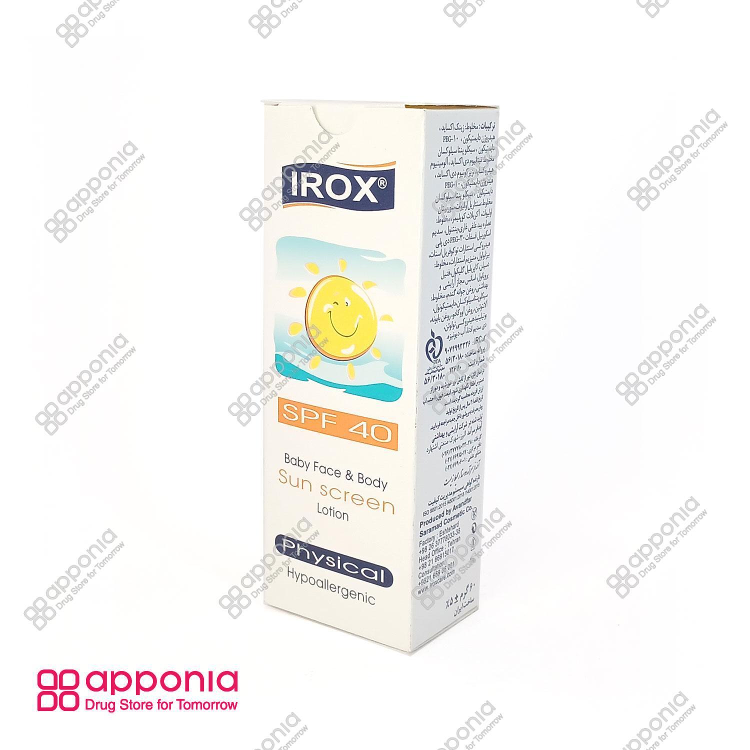 لوسیون ضد آفتاب فیزیکال کودک ایروکس (Irox Baby Sunscreen Lotion SPF40) محصولی است که به طور خاص برای محافظت از پوست نازک و حساس کودکان بالای ۶ ماه در برابر پرتوهای مضر نور خورشید طراحی شده است. این لوسیون یک ضد آفتاب فیزیکی (مینرال) و هیپوآلرژنیک است. در فرمولاسیون آن از بازتابندههای معدنی نظیر تیتانیوم دیاکساید و زینک اکساید در اندازه نانوفاین استفاده شده است که یک سد حفاظتی روی پوست ایجاد میکنند. این محصول ۹۶% محافظت کامل را در برابر تمام طول موجهای پرتوهای ماورای بنفش (UVA و UVB) فراهم میکند و بلافاصله پس از استفاده، محافظت خود را آغاز مینماید، برخلاف ضد آفتابهای شیمیایی که نیاز به زمان برای جذب دارند. این لوسیون دارای بافت سبک و قابلیت پخشپذیری بالا است که به سرعت جذب پوست میشود و هیچ اثر چربی یا چسبندگی بر جای نمیگذارد. همچنین، در برابر تجزیه نوری، تعریق و شستشو مقاوم است.