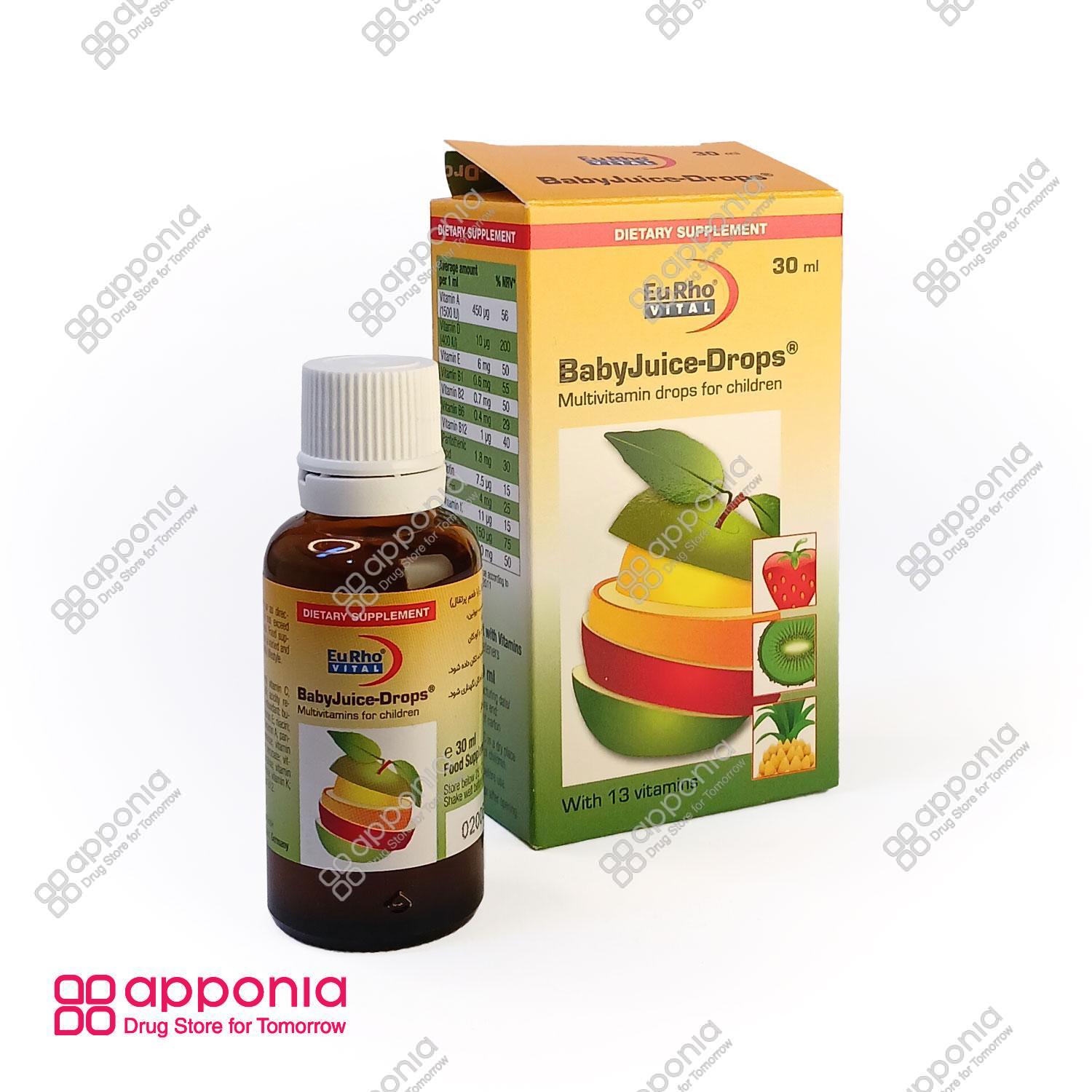 قطره بیبی جویس یوروویتال حاوی ویتامینهای محلول در آب و محلول در چربی با دوزهای مناسب و طعمی مطلوب برای نوزادان و کودکان زیر 2 سال است.