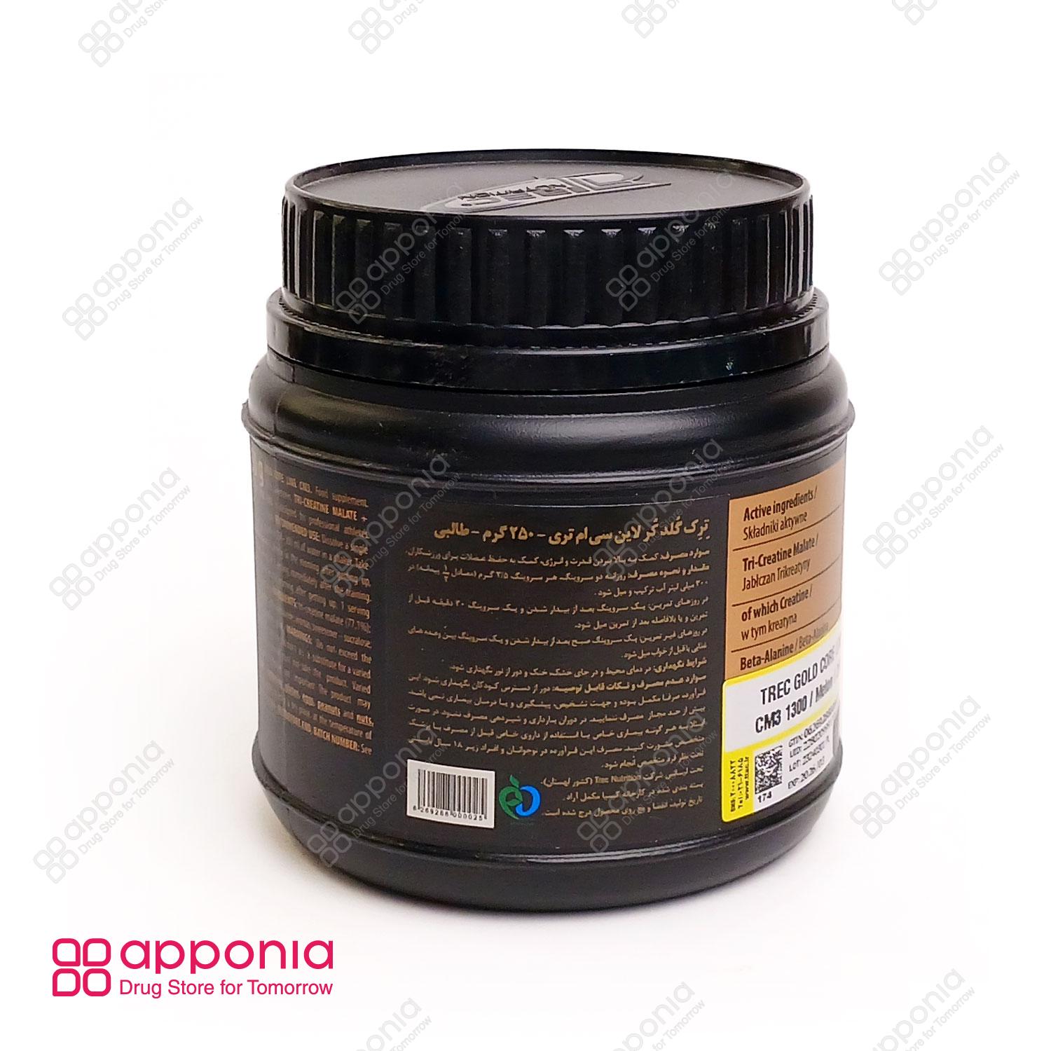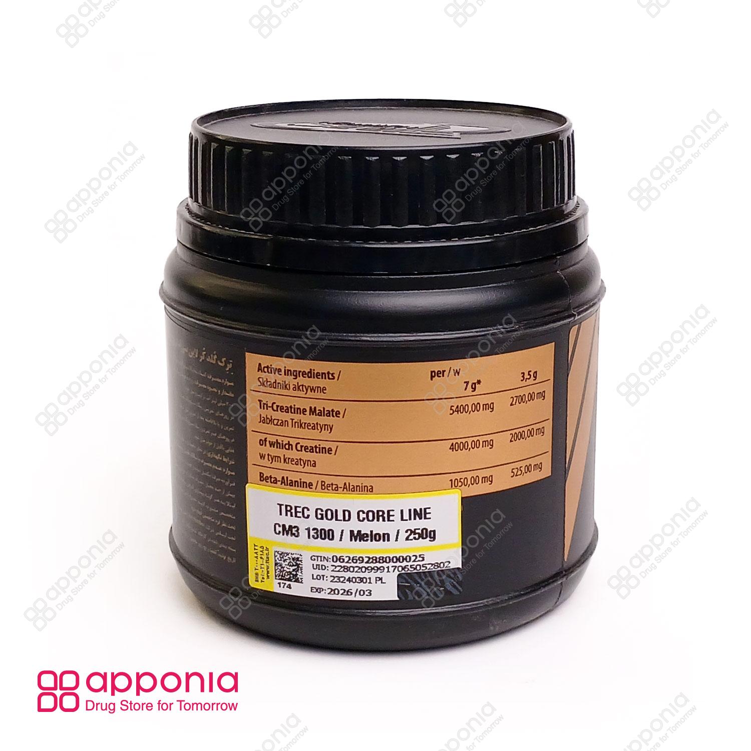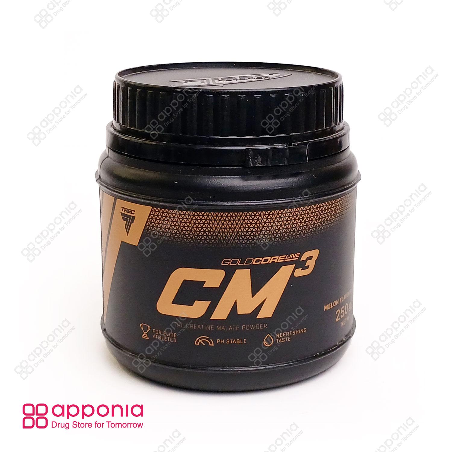 – Tri-creatine malate -پودر کراتین سی ام ۳ گلد کر لاین ترک نوتریشن (Trec Nutrition CM3 Gold Core Powder) یک مکمل بدنسازی تمام حرفهای است که بهطور تخصصی برای عضلهسازی و تأمین سطح بالایی از انرژی برای ورزشکاران قدرتی و سرعتی طراحی شده است. این محصول حاوی ترکیبی فوقالعاده از تری کراتین مالات و بتا آلانین است. تری کراتین مالات نوعی کراتین است که از اتصال سه مولکول کراتین به ساختار اسید مالیک ایجاد میشود. این نوع کراتین در برابر محیط اسیدی دستگاه گوارش مقاومت بالایی داشته و حلالیت و جذب بهتری نسبت به کراتین مونوهیدرات دارد. این ویژگی باعث میشود که کراتین خالص بلافاصله پس از شکسته شدن توسط اسید معده آزاد و جذب شود، که نتیجه آن جریان یافتن انرژی بیشتر در بافت عضلانی و ماهیچهای است. پودر کراتین سی ام ۳ در وزن ۵۰۰ گرم و همچنین ۲۵۰ گرم عرضه میگردد. طعمهای موجود برای این محصول شامل پرتقالی، طالبی و ملون است. این مکمل تحت لیسانس شرکت ترک نوتریشن لهستان بوده و توسط شرکت کیمیا مکمل آراد در ایران بستهبندی و تولید میشود.