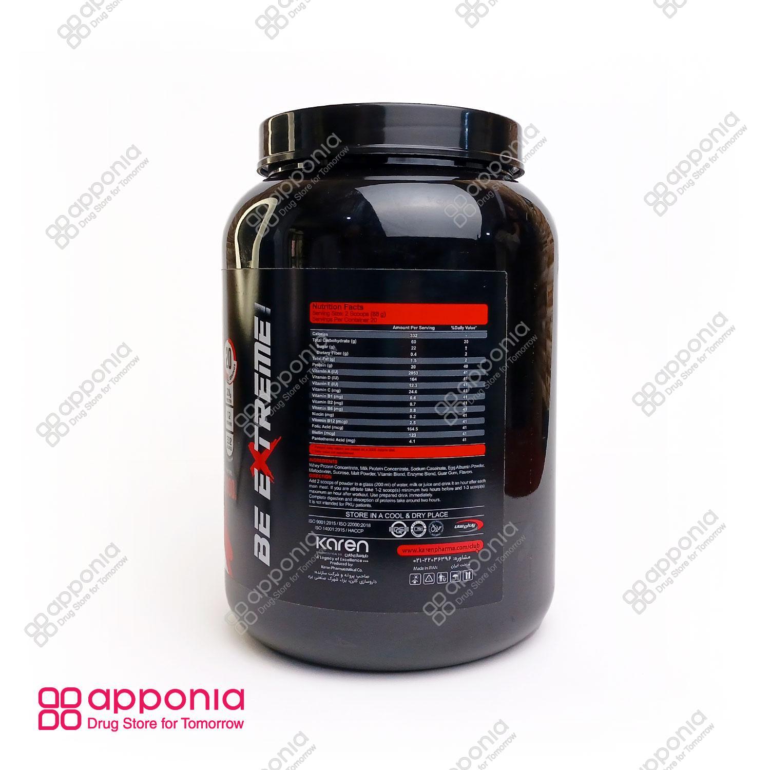 ترکیبات اصلی پودر گین آپ بزرگسالان کارن شامل پروتئین غلیظ شده آب پنیر، پروتئین غلیظ شده شیر، کازئینات سدیم، پودر سفیده تخم مرغ، مالتودکسترین، ساکارز، و پودر عصاره مالت است. این مکمل حاوی ۲۲% پروتئین از مخلوط پروتئینهای شیر و وی (Whey) است و در هر پیمانه آن ۱۰ گرم پروتئین وجود دارد. بر اساس جدول ترکیبات، هر ۱۰۰ گرم از این پودر حاوی ۲۰ گرم پروتئین و ۶۰ گرم کربوهیدرات است که نسبت کربوهیدرات به پروتئین را ۳ به ۱ نشان میدهد. لازم به ذکر است که منبعی دیگر اشاره میکند که در هر سروینگ گینر کارن، ۵۰ گرم پروتئین و ۱۵۰ گرم کربوهیدرات وجود دارد، که با اطلاعات دیگر منبع در تناقض است. علاوه بر این، گین آپ کارن حاوی ۱۲ نوع ویتامین برای تأمین ۱۰۰% نیاز روزانه بدن و انواع مواد معدنی است که به تقویت سیستم ایمنی و حفظ سلامت عمومی کمک میکند. مصرف این مکمل با افزایش کالری دریافتی از طریق پروتئین و کربوهیدرات، به افزایش وزن کمک کرده و در بازسازی ذخایر گلیکوژنی پس از تمرین و جلوگیری از تحلیل عضلانی نیز مؤثر است.