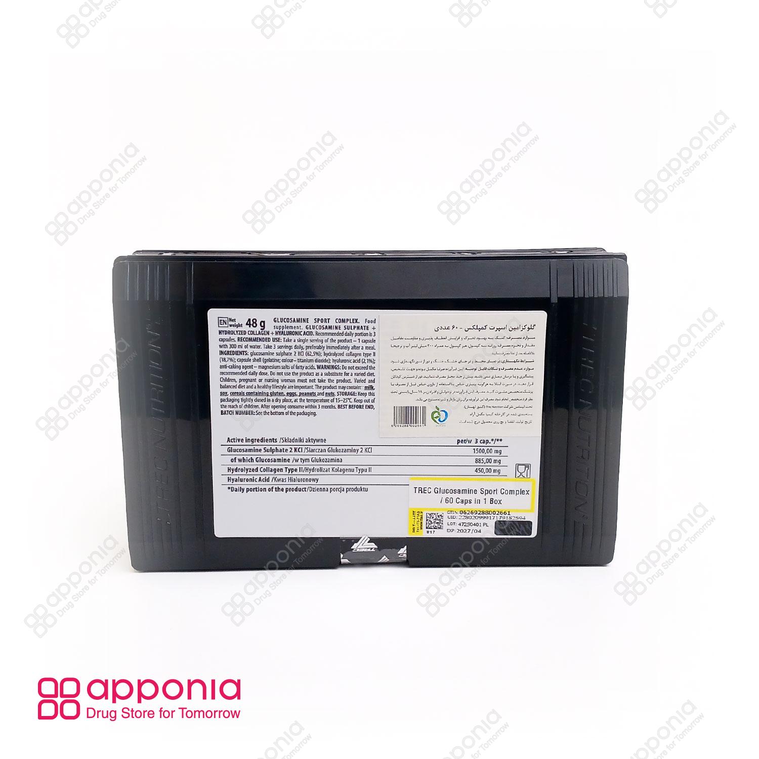 پودر (کپسول) گلوکزامین اسپورت کمپلکس ترک نوتریشن (Trec Nutrition Glucosamine Sport Complex) یک مکمل غذایی تخصصی است که بهطور ویژه برای حفظ سلامت مفاصل، غضروفسازی و کاهش دردهای مفصلی برای ورزشکاران و افرادی که مشکلات مفصلی دارند، طراحی شده است. این مکمل غضروفساز و ضد التهاب بسیار با کیفیت، تحت لیسانس شرکت ترک نوتریشن لهستان تولید شده و توسط شرکت کیمیا مکمل آراد در ایران بستهبندی و عرضه میگردد. گلوکزامین اسپورت کمپلکس به صورت ۶۰ عدد کپسول در هر بسته عرضه میشود. فرمولاسیون این مکمل شامل ترکیبات کلیدی و مهمی برای ترمیم غضروفها است، از جمله: گلوکزامین سولفات ۲KCI (۱۵۰۰ میلیگرم در هر ۳ کپسول)، کلاژن هیدرولیز شده نوع II (۴۵۰ میلیگرم)، و اسید هیالورونیک (۵۰ میلیگرم). گلوکزامین یک ماده طبیعی است که در اطراف مفاصل وجود دارد و نقش موثری در ساخت غضروف ایفا میکند و یکی از محبوبترین مکملها در درمان آرتروز است.