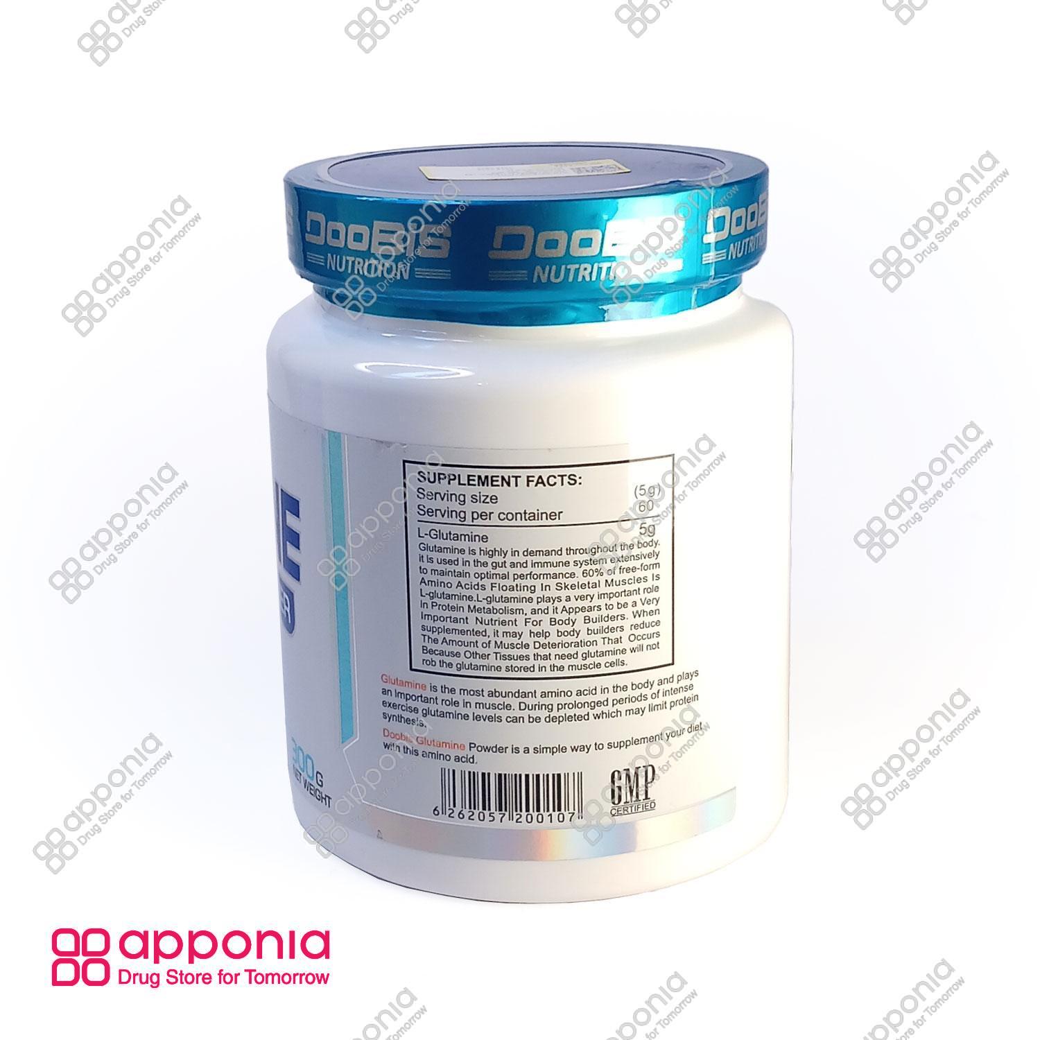 پودر گلوتامین پیور دوبیس (Doobis Glutamine Pure 100% Powder) مکملی است که توسط شرکت صنایع غذایی ایلیا پارس در ایران و تحت لیسانس و نظارت یونیک فارمای استرالیا تولید میشود. این محصول حاوی گلوتامین خالص است و در قوطیهای پلاستیکی ۳۰۰ گرمی به بازار عرضه میگردد. هر سروینگ از این پودر شامل ۵ گرم گلوتامین خالص است که در مجموع ۶۰ سروینگ را فراهم میکند. گلوتامین فراوانترین اسید آمینه در بدن انسان است و نقش مهمی در بسیاری از عملکردهای بیوشیمیایی از جمله سنتز پروتئین، تنظیم تعادل اسید و باز، تولید انرژی سلولی و تامین نیتروژن برای فرایندهای سازنده بدن ایفا میکند. این اسید آمینه در بدن ساخته میشود و از طریق غذاهایی مانند گندم، بادام زمینی، ذرت و شیر نیز قابل دریافت است؛ با این حال، ورزشکاران با فعالیتهای ورزشی افزایشیافته، ممکن است نیاز بیشتری به دریافت گلوتامین از طریق مکملها داشته باشند.