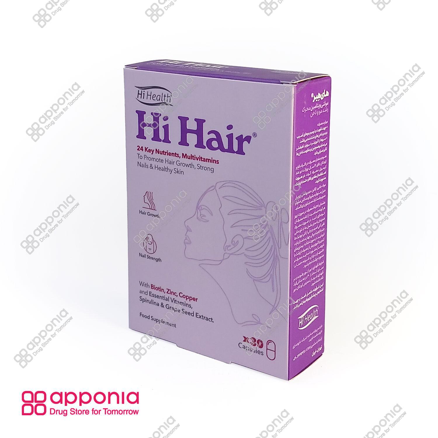 های هیر Hi Hair به عنوان یک مکمل ریزش موی بی نظیر برای خانمها و آقایان ، دارای 24 ماده مغذی ضروری به شکل مواد معدنی، ویتامین ها و آنتی اکسیدان ها می باشد. همچنین مکمل کپسول های هیر Hi Hair فرمولاسیونی جامع برای سلامت بهتر پوست، مو و ناخن ها و در عین حال کمک به مبارزه با رادیکال های آزاد است.