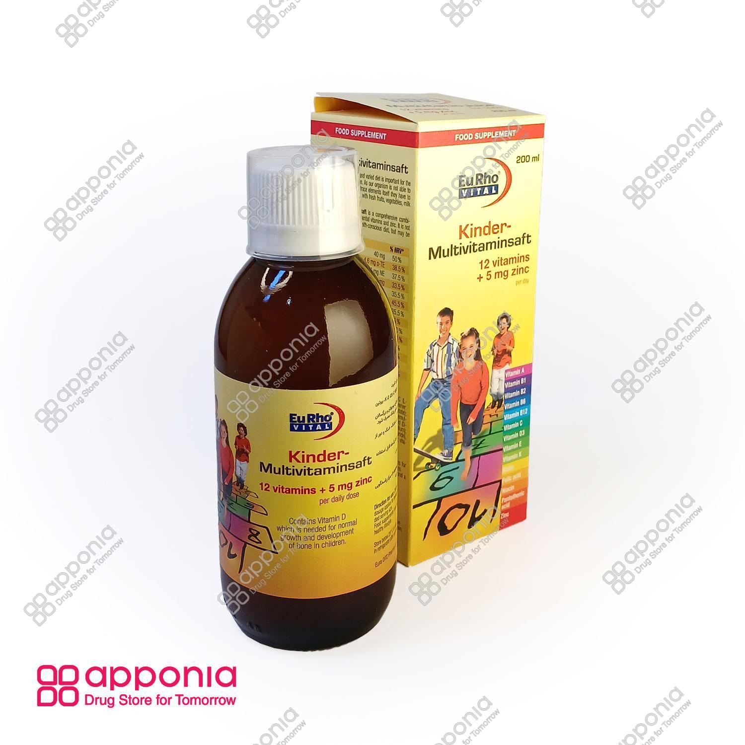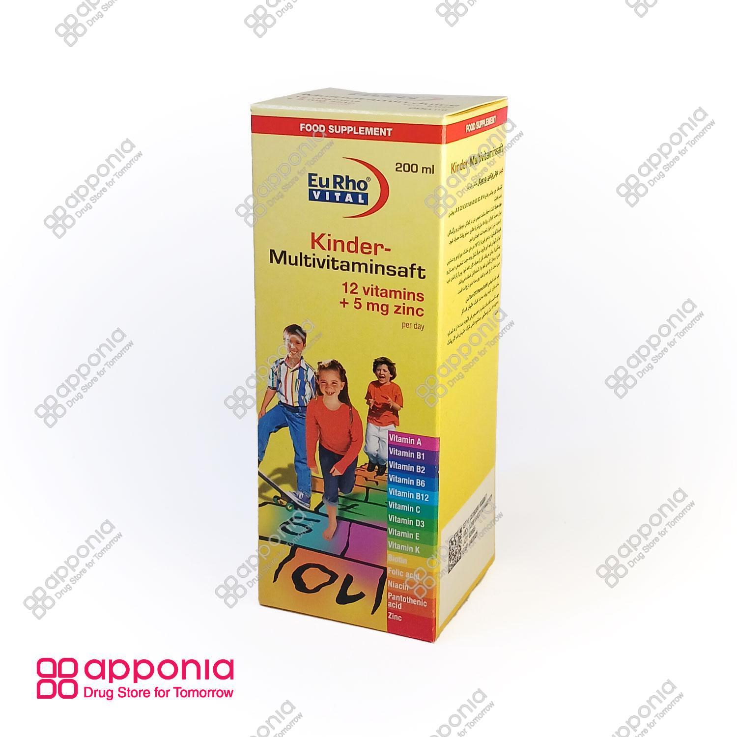شربت کیندر مولتی ویتامین یوروویتال حاوی کلیه ویتامینهای محلول در آب و محلول در چربی به همراه روی است که تمامی نیازهای کودکان و نوجوانان به این ویتامینها و مواد معدنی را تامین میکند.