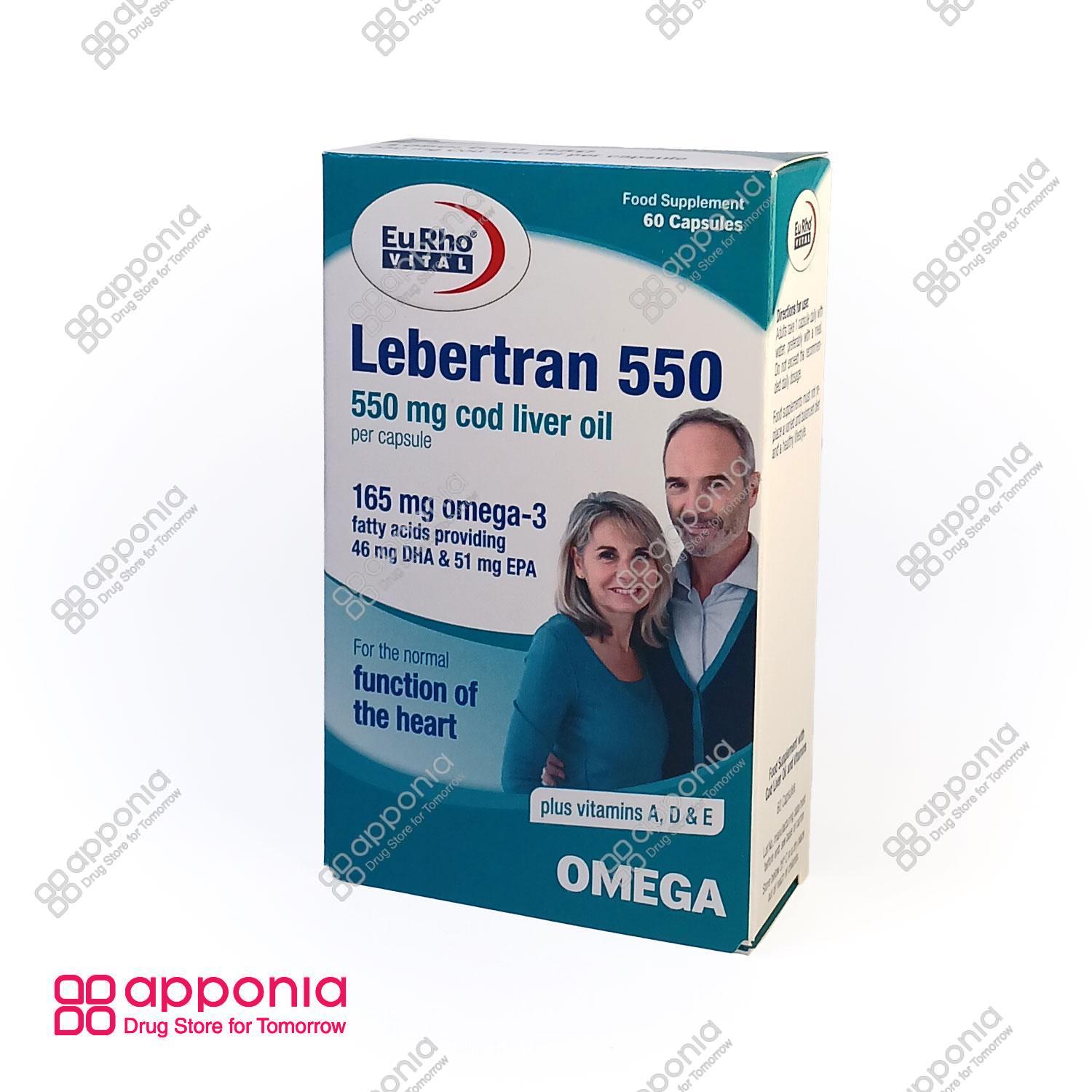 کپسول لبرترن 550 یوروویتال حاوی امگا-3 استخراج شده از روغن کبد ماهی به‌همراه ویتامین‌های A، D و E است که به کاهش سطح التهاب، حفظ سلامت قلب و عروق، تقویت عملکرد سیستم ایمنی و سلامت سیستم عصبی کمک می‌کند.
