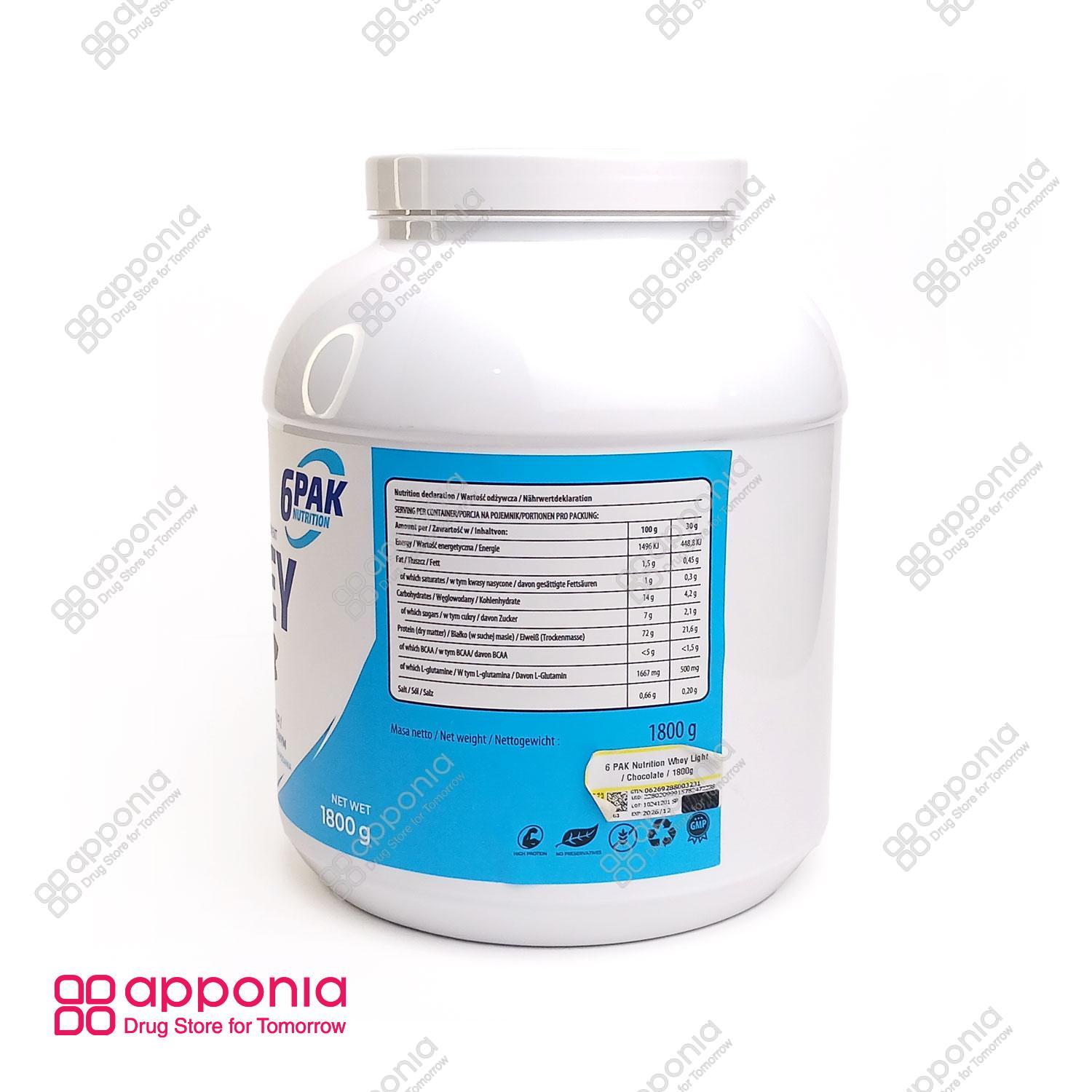 پودر پروتئین لایت وی سیکس پک نوتریشن (6Pak Nutrition Light Whey Protein Powder) یک مکمل پروتئینی باکیفیت است که برای ورزشکارانی که به دنبال افزایش حجم عضلات بدن و بهبود عملکرد بدنی خود هستند، طراحی شده است. این محصول تحت لیسانس شرکت ترک نوتریشن لهستان تولید شده و از نظر کیفیت با استانداردهای بین‌المللی مطابقت دارد. این مکمل در محفظه‌های پلاستیکی و در وزن ۱۸۰۰ گرم عرضه می‌شود و معمولاً به همراه یک شیکر در بسته‌بندی ارائه می‌گردد. لایت وی سیکس پک حاوی پروتئین وی کنسانتره است که به دلیل قابلیت هضم آسان و جذب سریع، به سرعت آمینواسیدهای ضروری را برای عضلات فراهم می‌کند. این مکمل به دلیل داشتن مقادیر پایین کربوهیدرات (۴.۲ گرم در هر سروینگ) و چربی ناچیز (۰.۴۵ گرم در هر سروینگ)، انتخابی مناسب برای ورزشکارانی است که در دوره کات یا رژیم‌های کاهش وزن به دنبال یک منبع پروتئینی خالص و باکیفیت هستند. طعم این محصول شکلاتی است که مصرف روزانه آن را دلپذیر می‌کند.